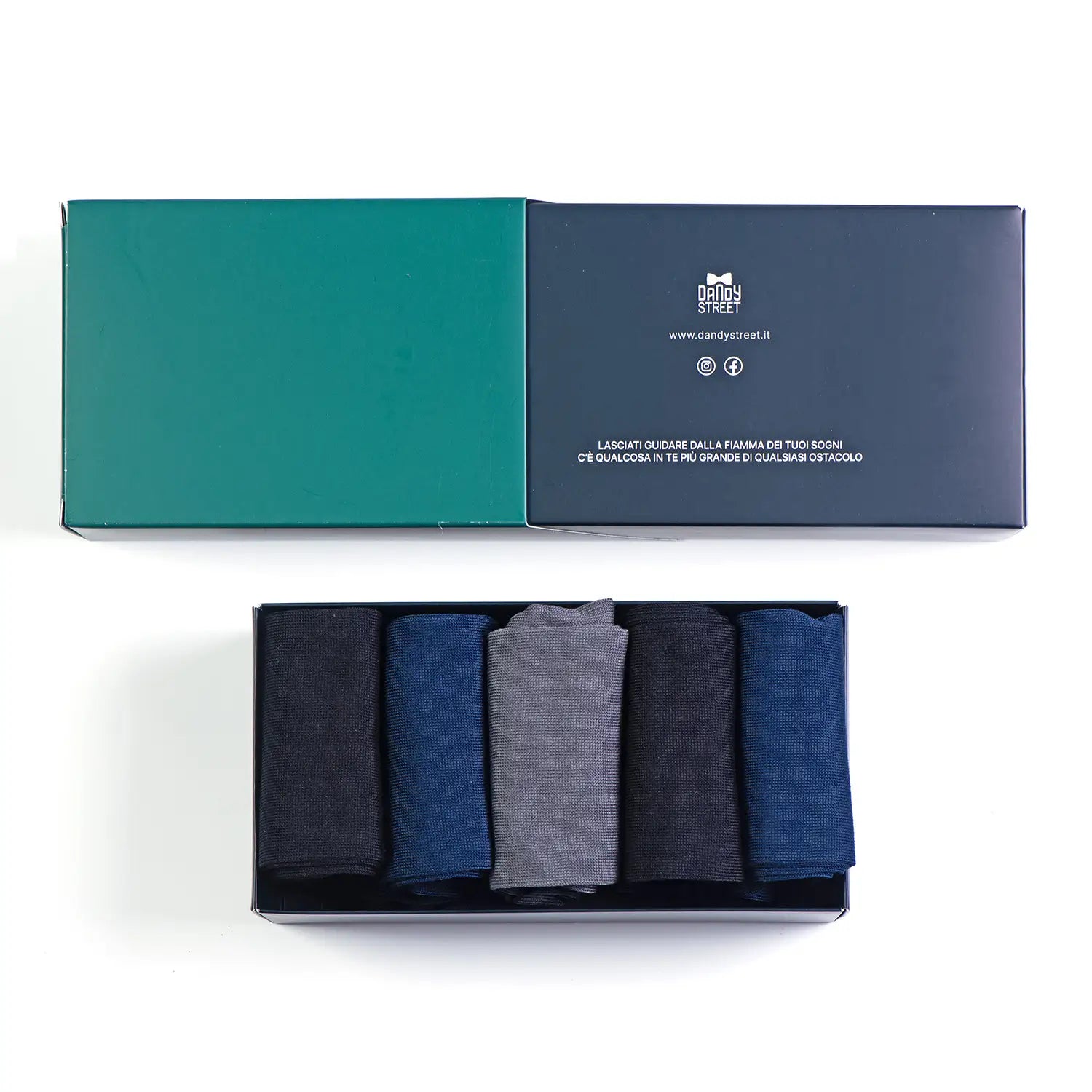 Verpasse nicht diese Socks Box, bestehend aus einem Set klassischer und eleganter Socken in verschiedenen Farben aus warmem Baumwollstoff von Dandy Street: Es handelt sich um ein Modell mit raffiniertem Design, hergestellt in Italien, perfekt für alle, die bequeme, strapazierfähige und vielseitige Herrensocken suchen. Die gleichmäßige Verarbeitung und die dezente Stickerei verleihen einen sauberen und gepflegten Look, ideal für den täglichen Gebrauch, formelle Outfits oder lässigere Kombinationen.