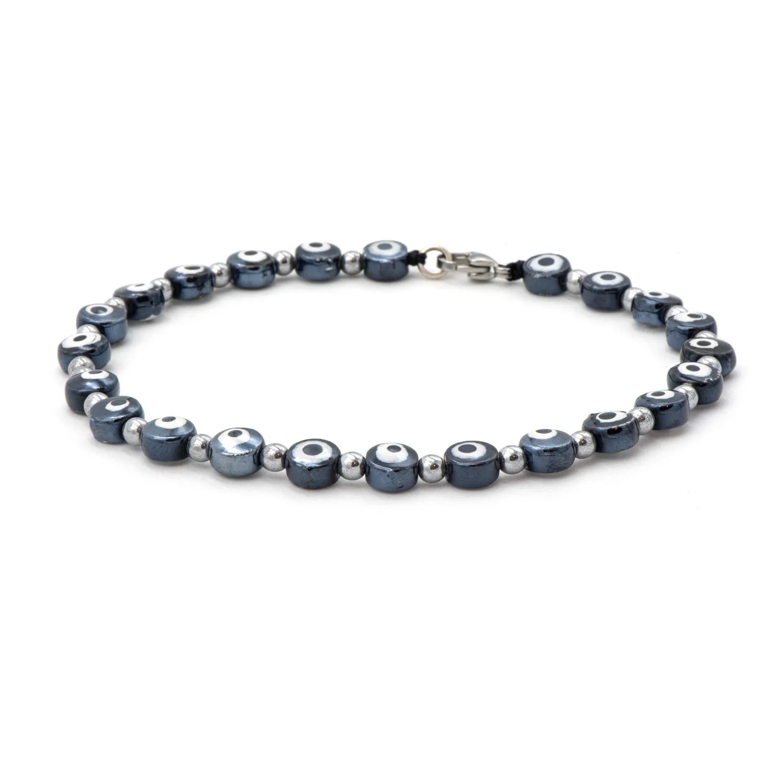 The Lucky Grey anklet is the ideal accessory for the man who loves summer, traveling, the sea, and new adventures: made in Italy, it is composed of high-quality ceramic beads, hand-painted with the symbol of the Greek eye. The Greek eye is a talisman that protects the wearer from negative energies and is also a symbol of health and luck. This anklet suits any look and outfit, whether in the city or on vacation. You can pair it with pants, shorts, t-shirts, shirts, shoes, or flip-flops. The anklet with the Greek eye is a sign of freedom and carefreeness, an accessory that will make you feel unique and help you express your personality and style.