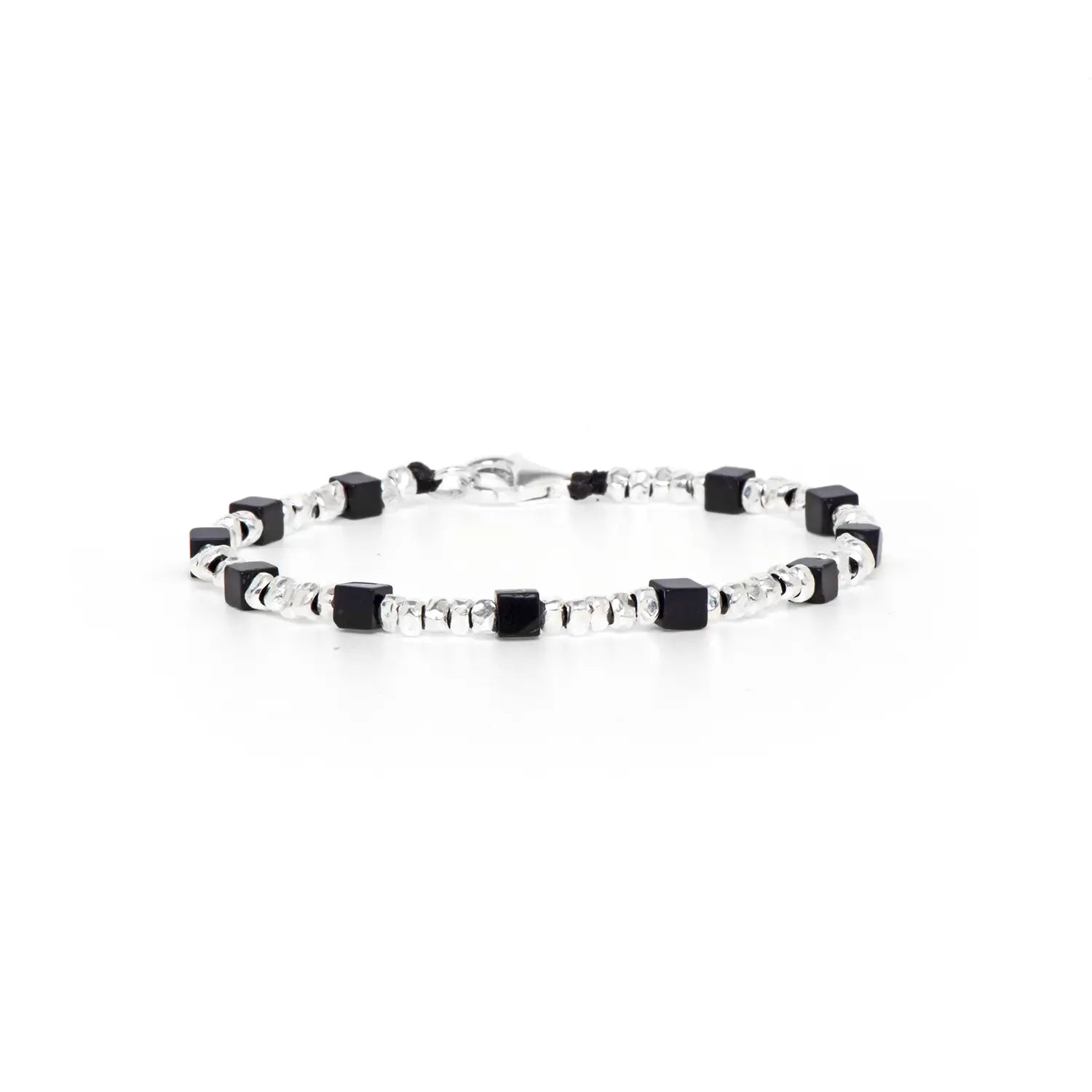 Wimor is a men's bracelet handmade in Italy, a refined and versatile accessory: featuring 925 silver nuggets, interspersed with polished onyx stones, it embodies a sober and modern elegance.