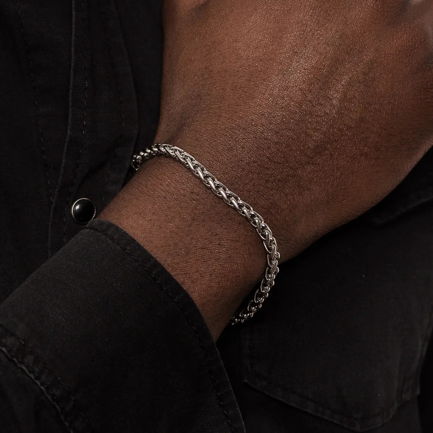 Refined and versatile men's bracelet in steel with wheat chain, for a timeless charm that will never go out of style, adjustable and with lobster clasp closure