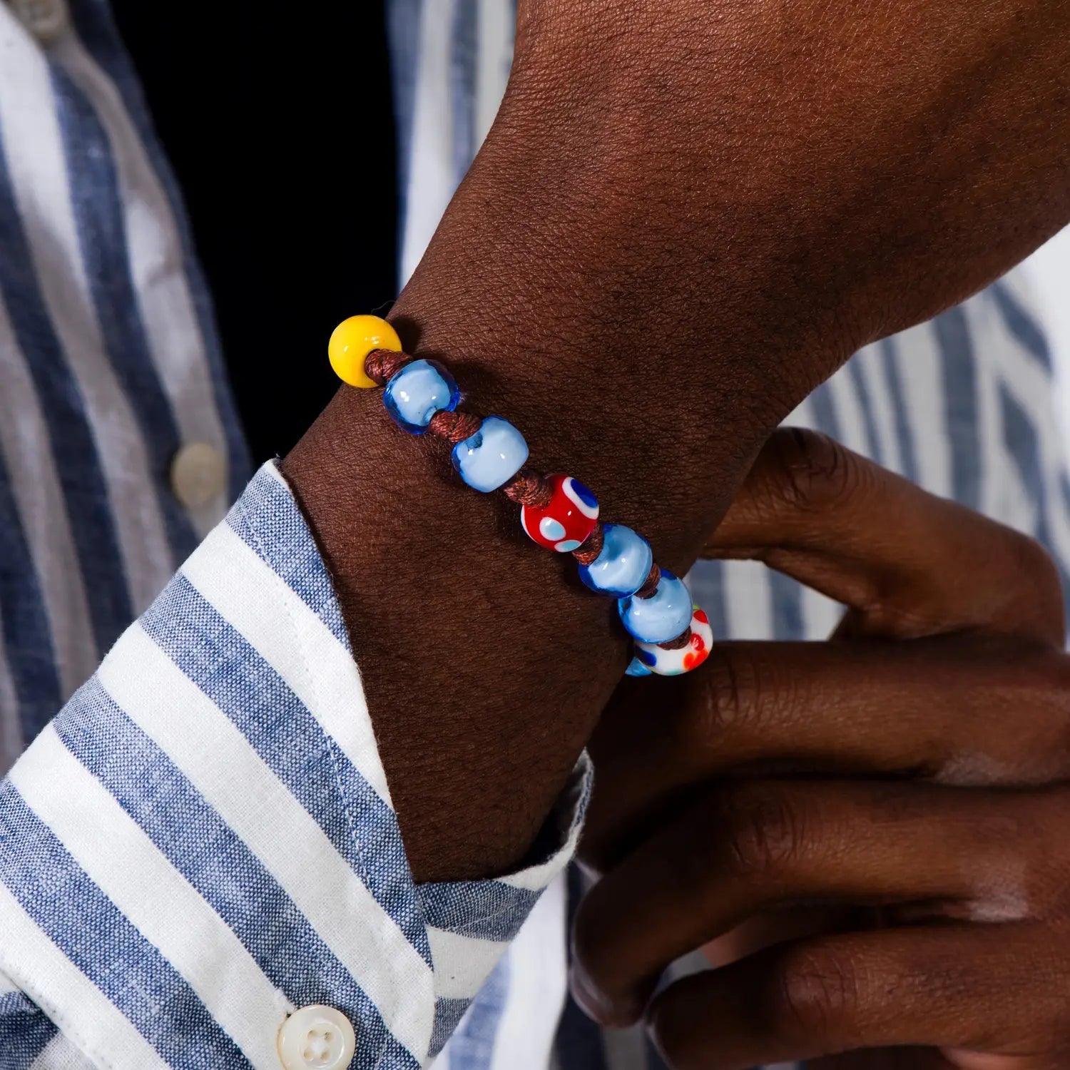 Malipiero is a refined men's bracelet handcrafted in Italy: this piece of jewelry is a testament to Italian craftsmanship, as it is handmade with prestigious Venetian Murrine, Murano glass beads.