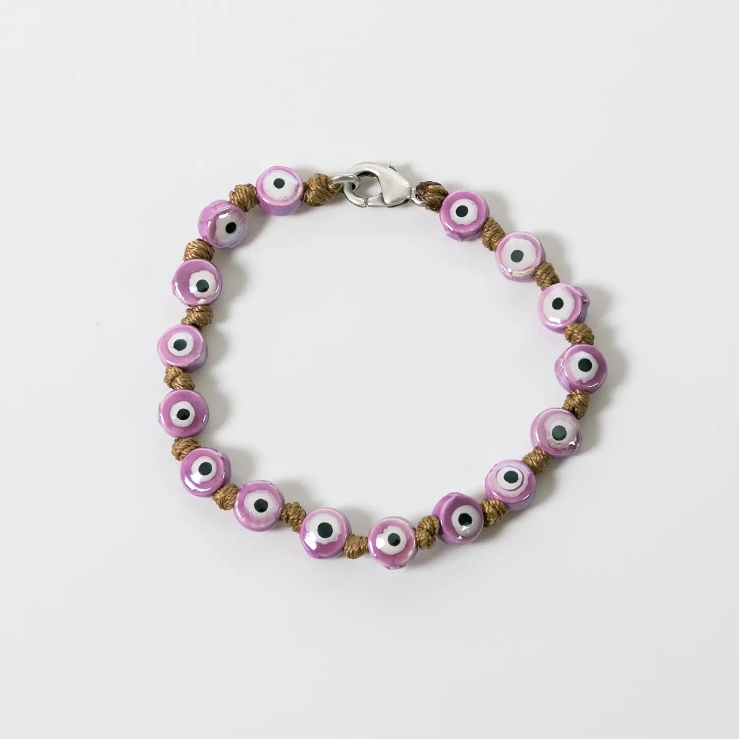 This men's bracelet from the Lucky series is a handmade, original, and trendy accessory made in Italy, perfect for summer: crafted with ceramic beads featuring a hand-painted Greek eye, a symbol of protection and luck, the bracelet adds a touch of color and personality to your look. You can wear it with casual or elegant outfits, in the city or on vacation, to express your style and creativity. The bracelet pairs easily with light or dark garments, creating a harmonious and refined contrast for a fresh and modern outfit.