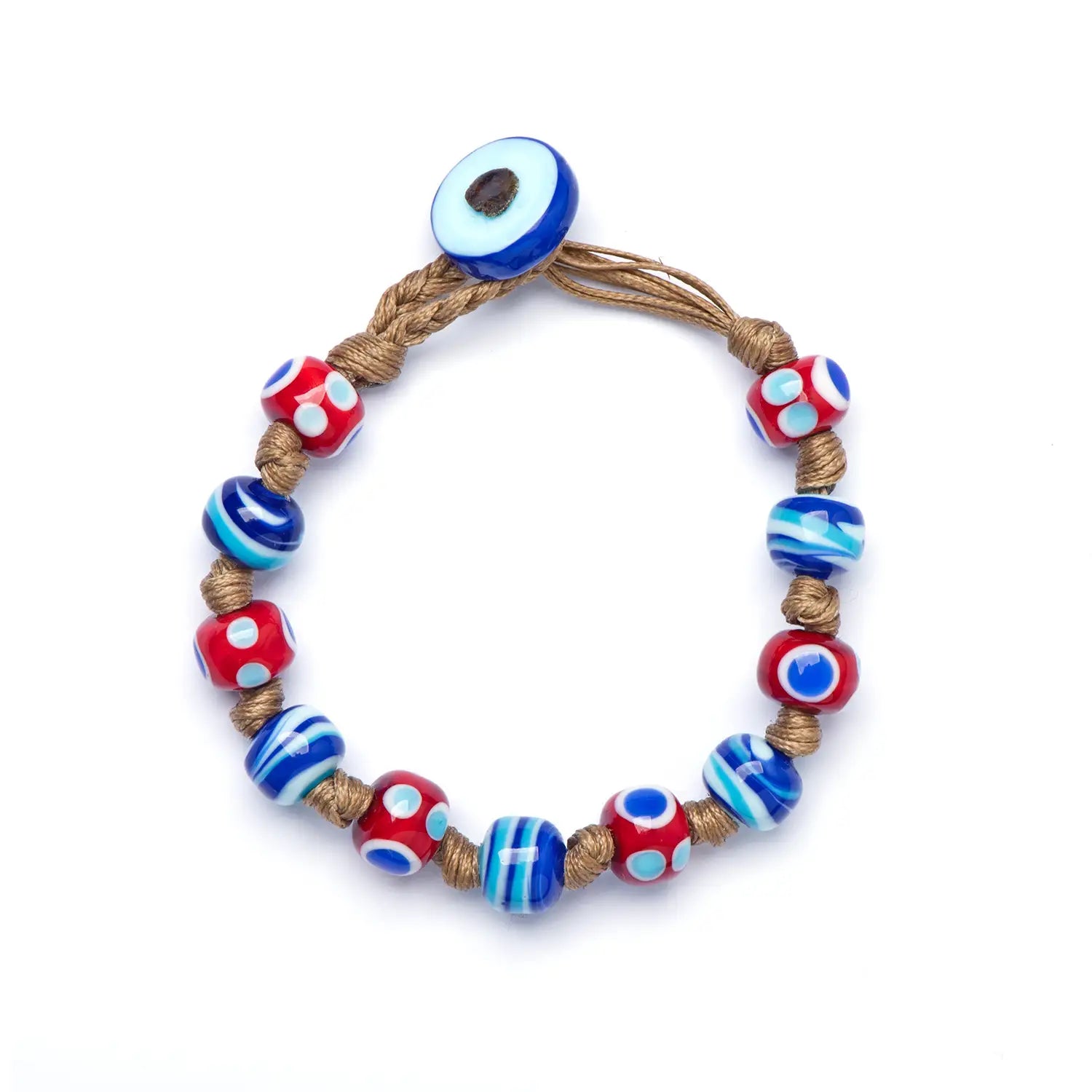 • Materials: Brown waxed cord with knotted detailing, murrine