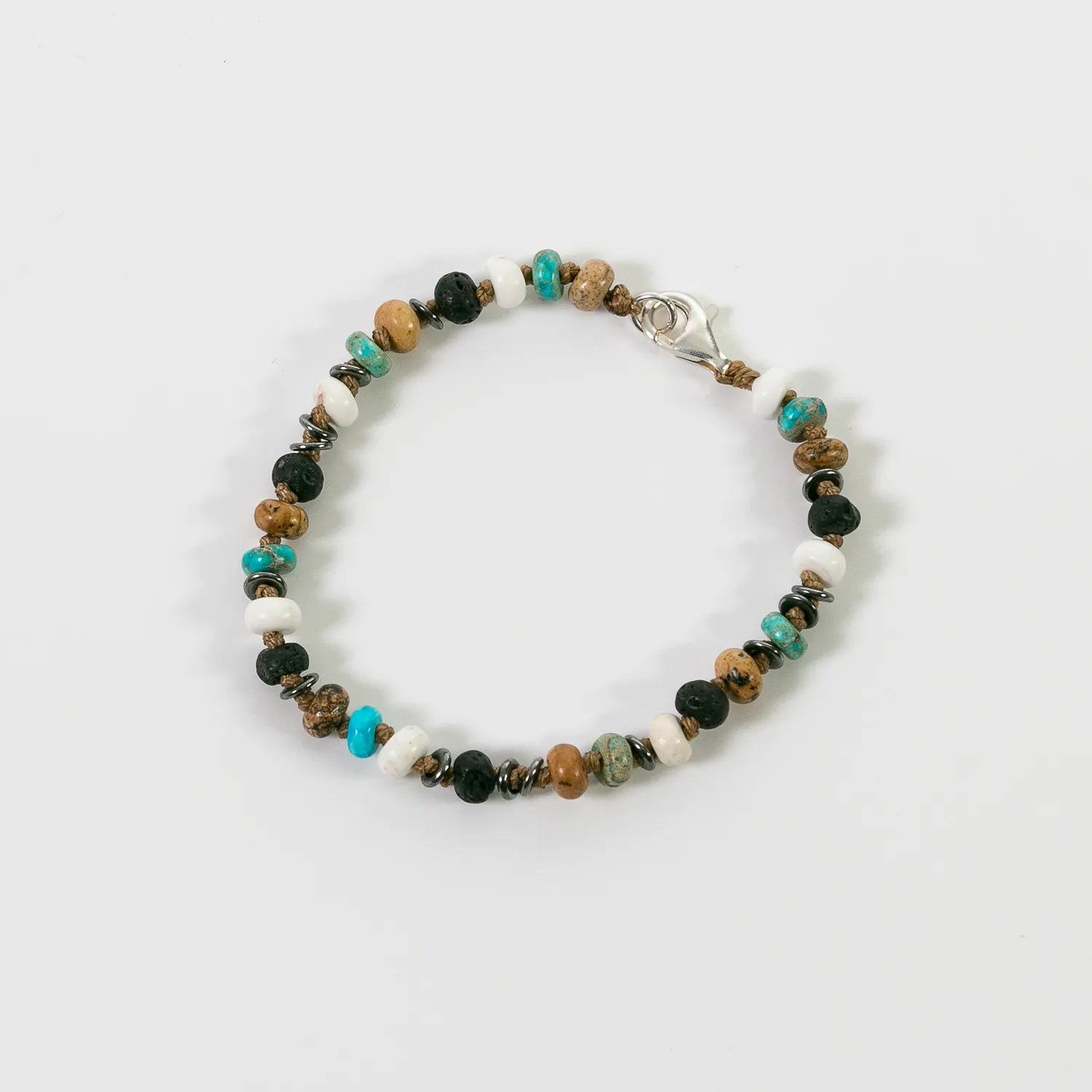 - Stones: Turquoise imperial jasper, lava stone, white howlite, and paesina stone with 6 mm rondelle cut