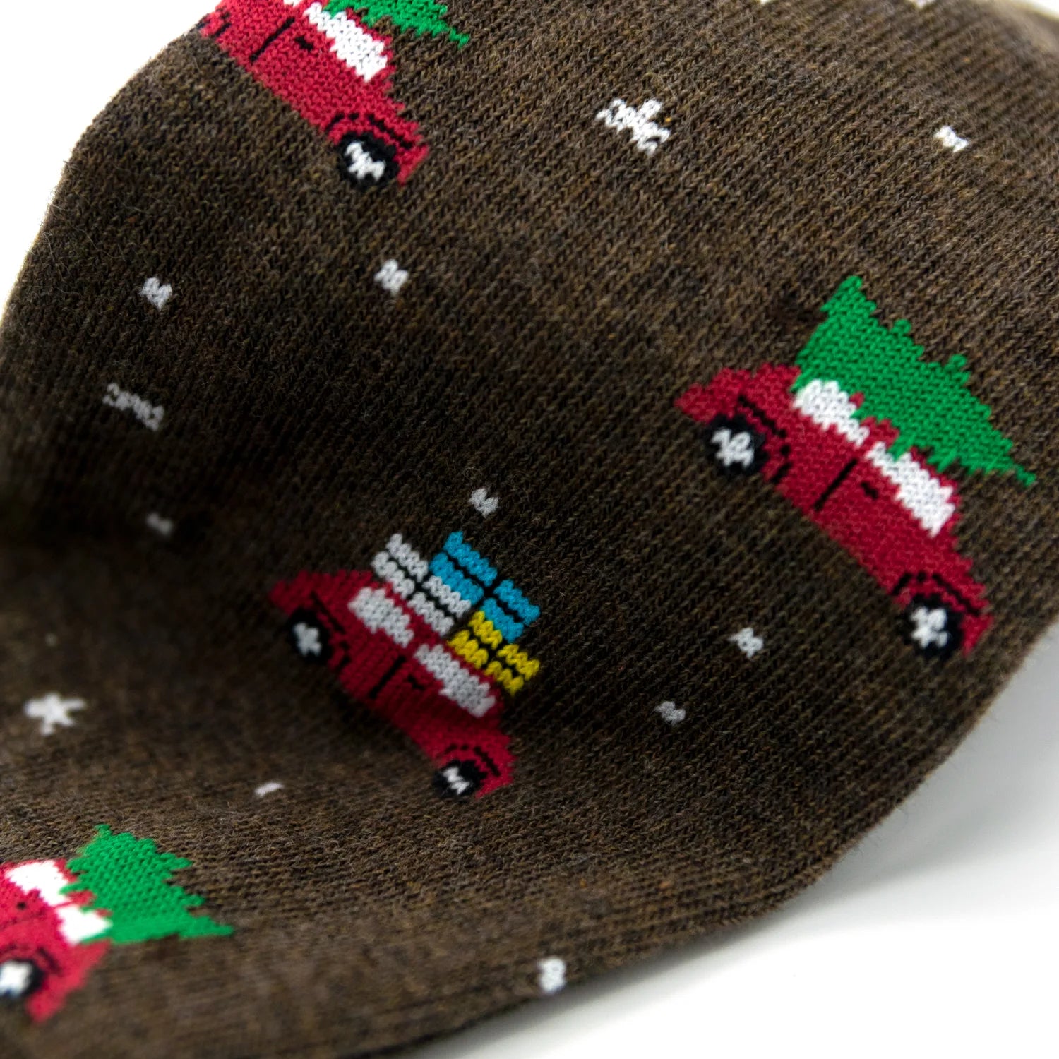 This men's cotton sock with a Christmas pattern is an original and fun garment, ideal for those who love the holidays. The sock features a pattern of cars carrying gifts and Christmas trees, making it perfect for anyone who wants to fully enjoy Christmas and suits any extravagant outfit worn during the festive season. The sock is made of high-quality cotton and ensures comfort and durability. With this sock, you can feel as if you are always traveling to a happy and surprise-filled destination. Socks have become an essential accessory for outfits, and people are wearing increasingly unique socks. This sock is definitely a great gift idea for yourself or someone you care about.