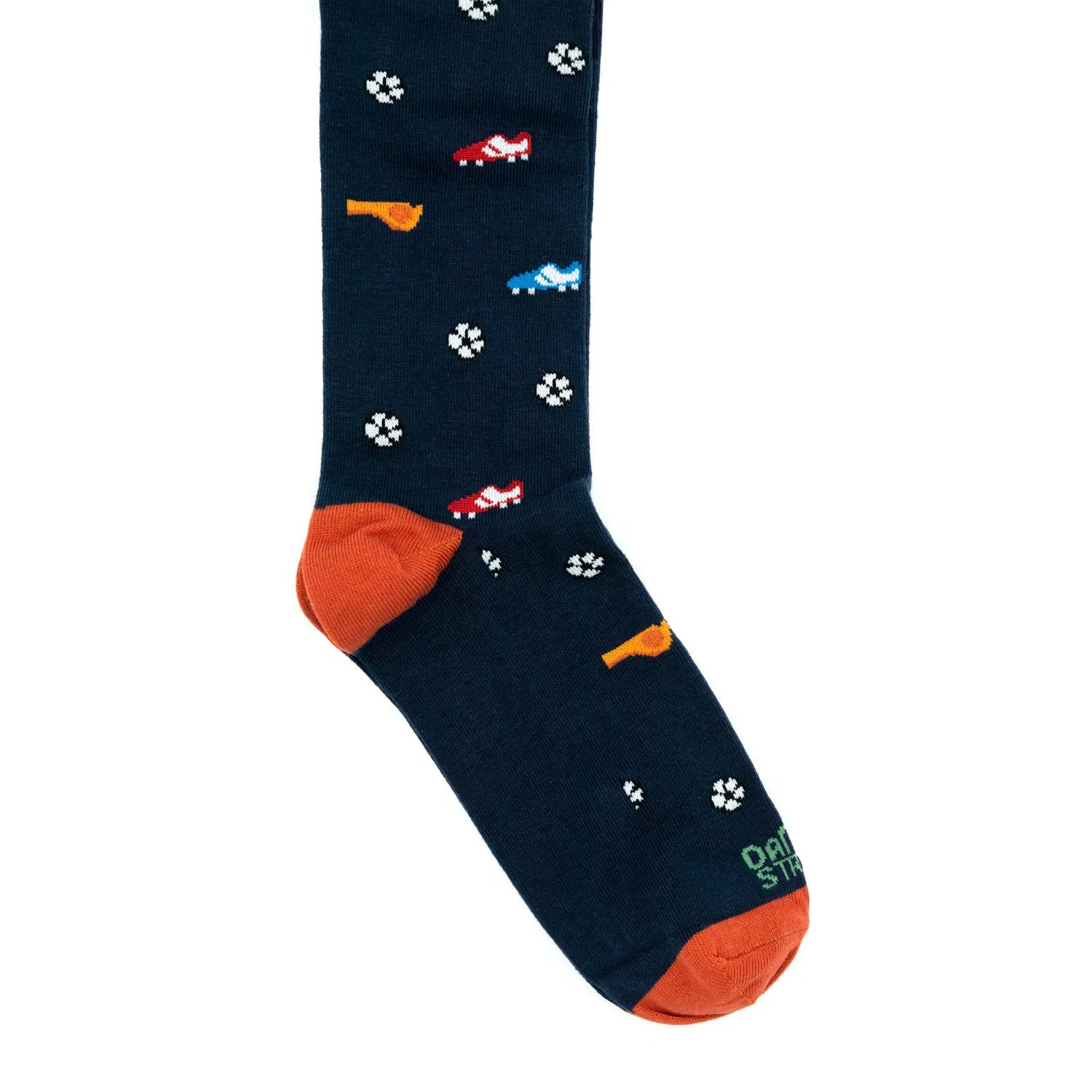 This men's cotton sock with a patterned design is an original and fun item, perfect for football enthusiasts or anyone looking to add a sporty touch to their sock collection. The sock features a pattern of footballs and cleats and, made from high-quality cotton, offers comfort and durability. The sock has a sporty and playful style that suits everyday casual wear. With this sock, you can feel like you're always on the football field, ready to score a goal in life. This men's cotton sock with a football pattern is a unique and truly special item that should not be missing from your wardrobe.