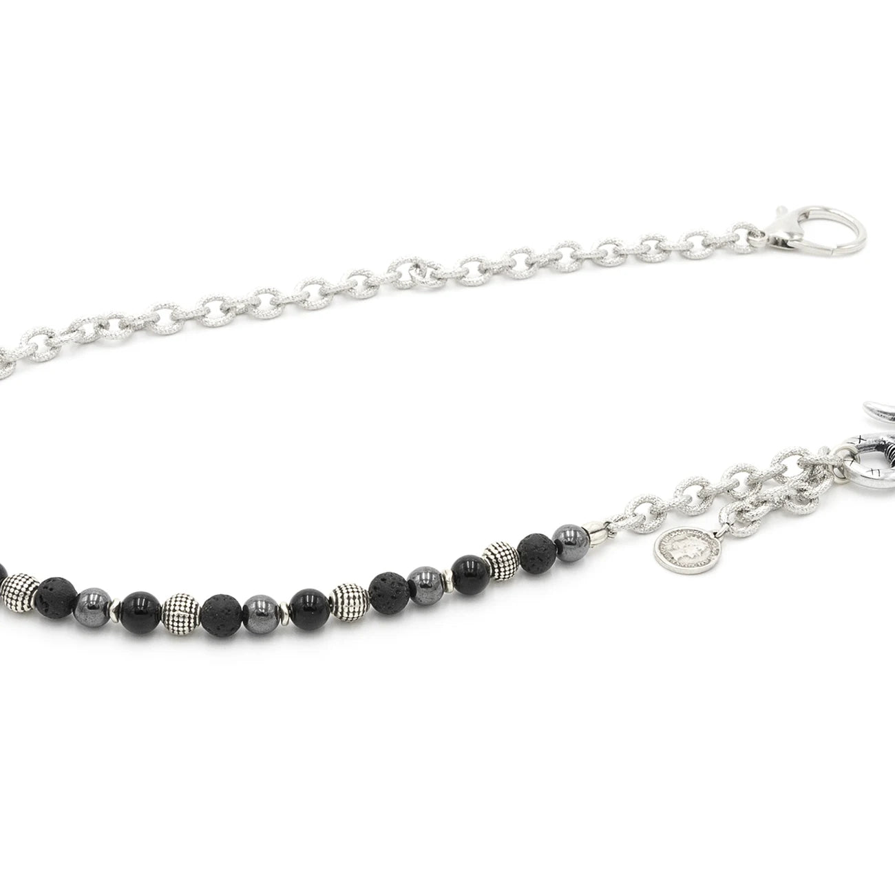 Dandy Street - shop online - accessori uomo - catena per jeans da uomo - pietre naturali ematite onice - perle zigrinate placcate argento - pendaglio con monetina - Marav