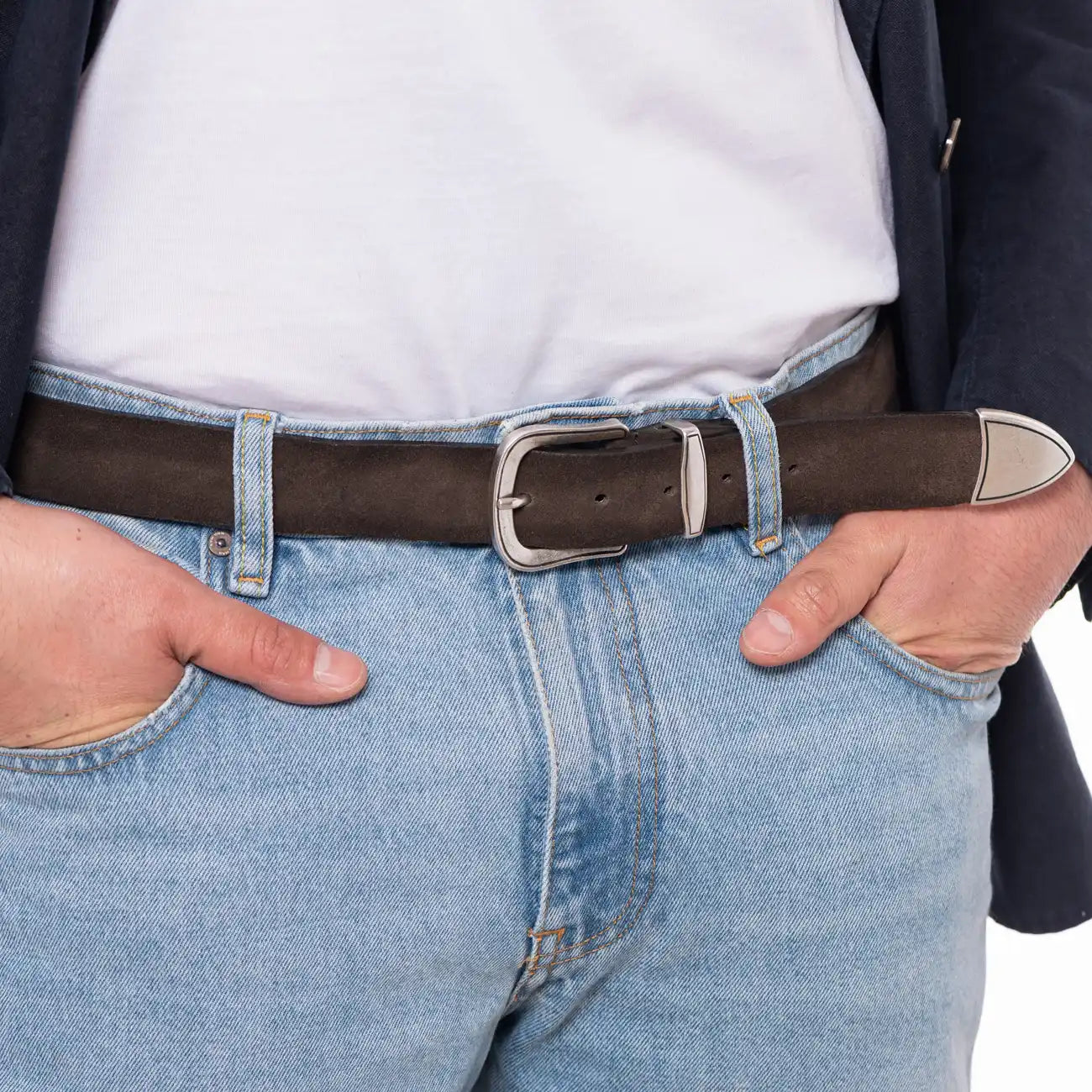 Kamos is a men's suede leather belt handcrafted by our expert artisans.