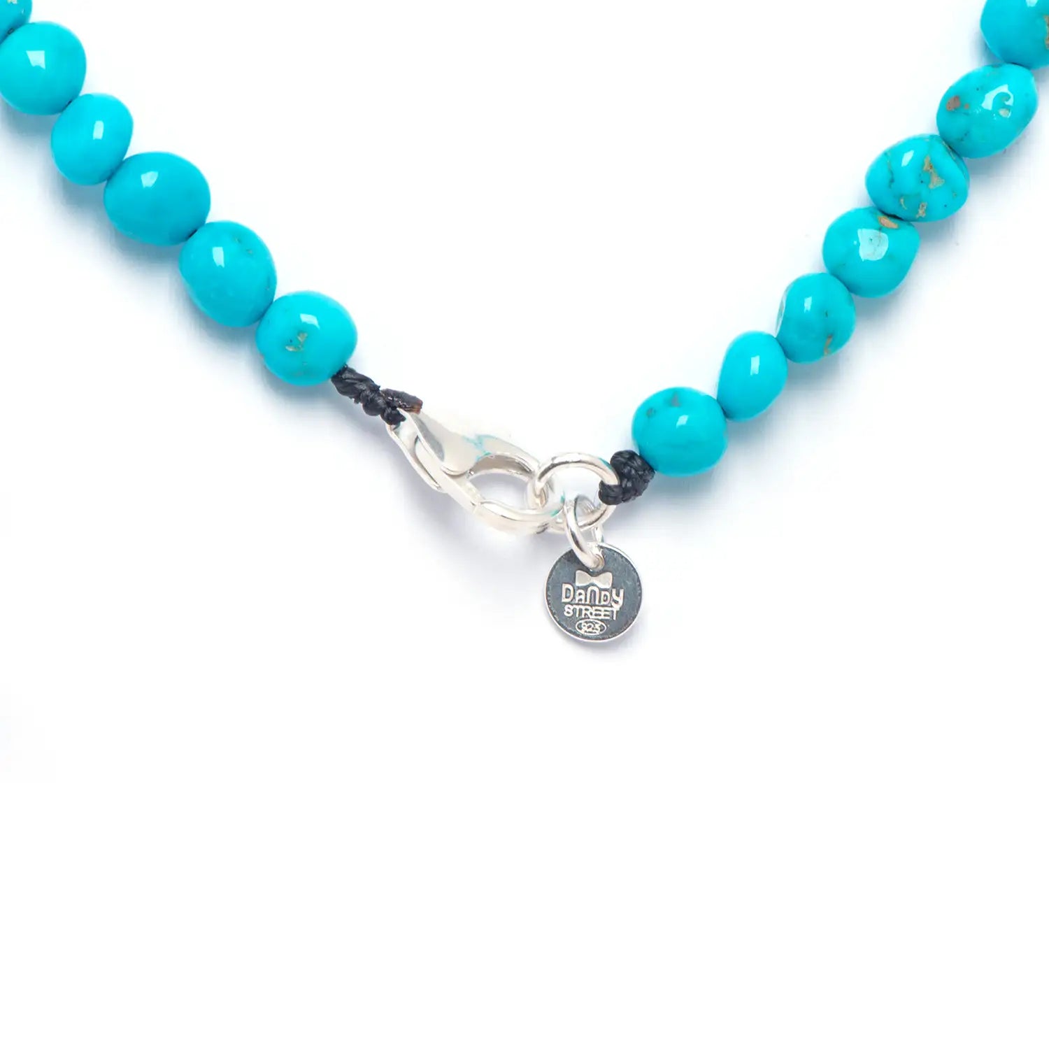 Skystone is a men's necklace handmade in Italy with turquoise stones, an elegant and radiant accessory that captivates with its chromatic purity and refined style. Made from authentic Arizona turquoise stones, it stands out for its vibrant blue shades and natural veins that give depth and uniqueness to every detail.