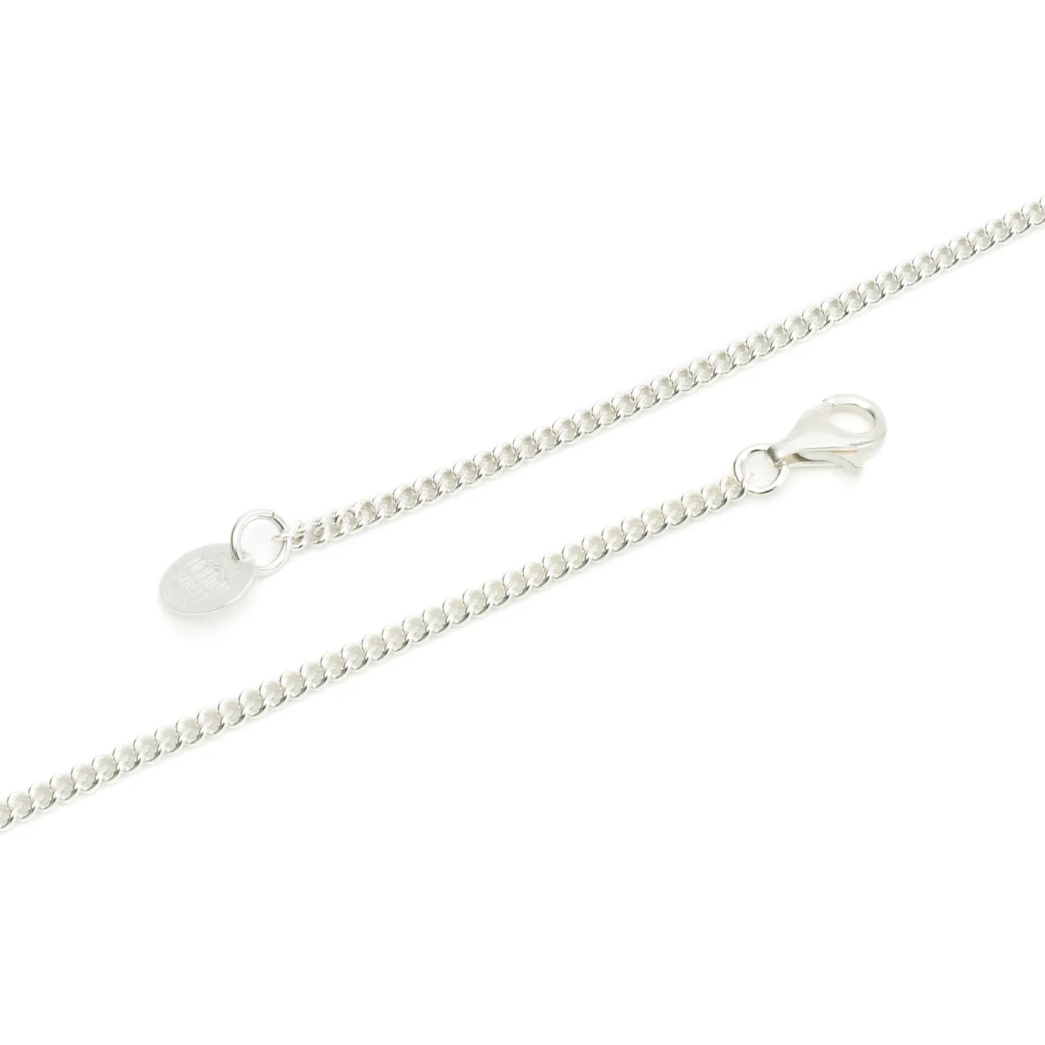 - Materials: Cable chain and findings in 925 silver with pendants in natural stones, ceramic, and an antiqued brass glyph