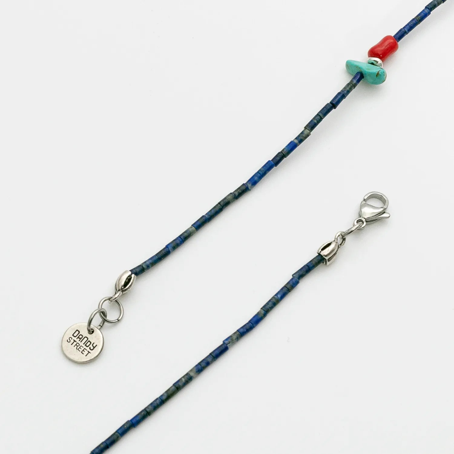 - Stones: 3mm tube lapis lazuli, turquoise aulite chips, and bamboo coral with various cuts