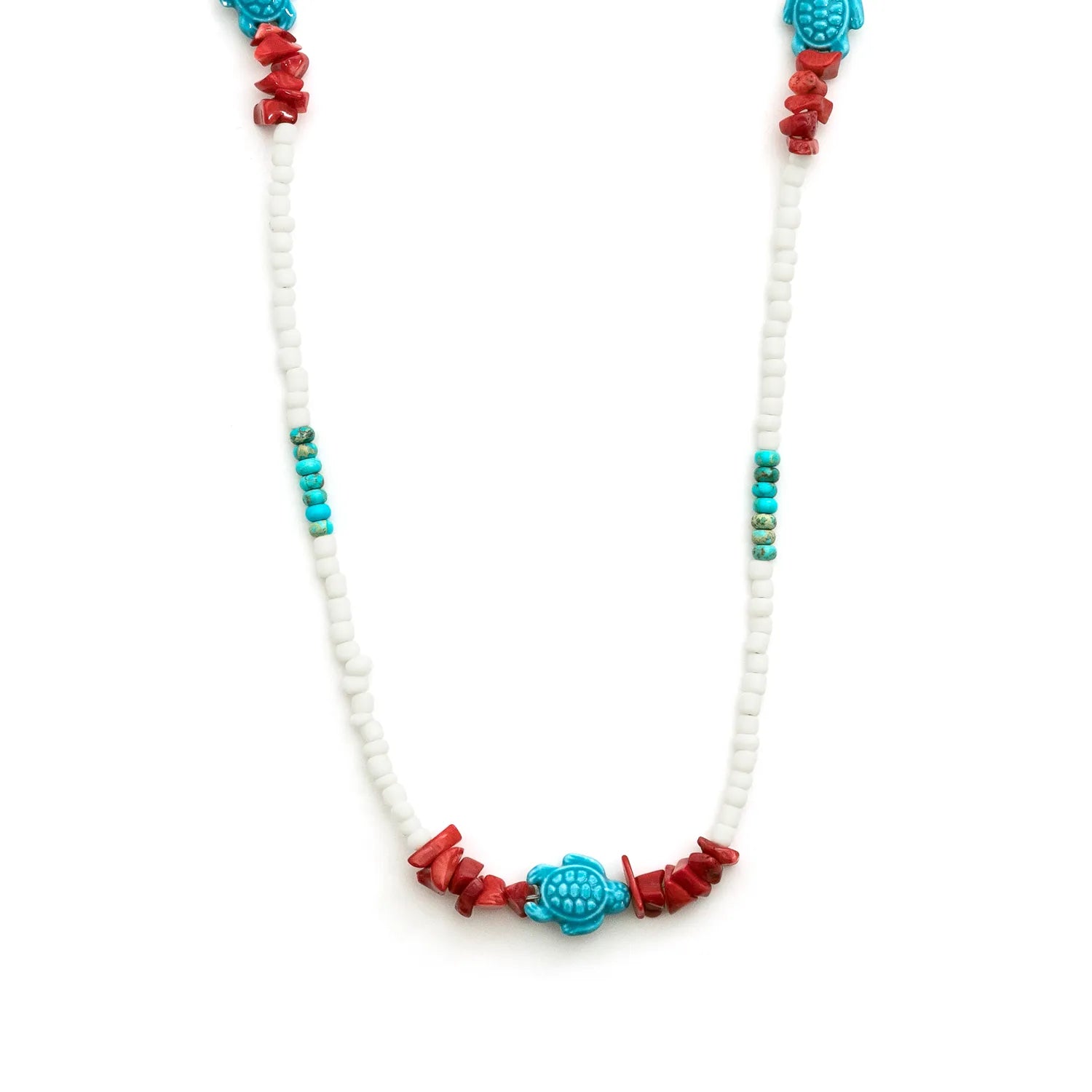 - Materials: 5-micron silver-plated findings and clasp, ceramic pendant shaped like a blue turtle