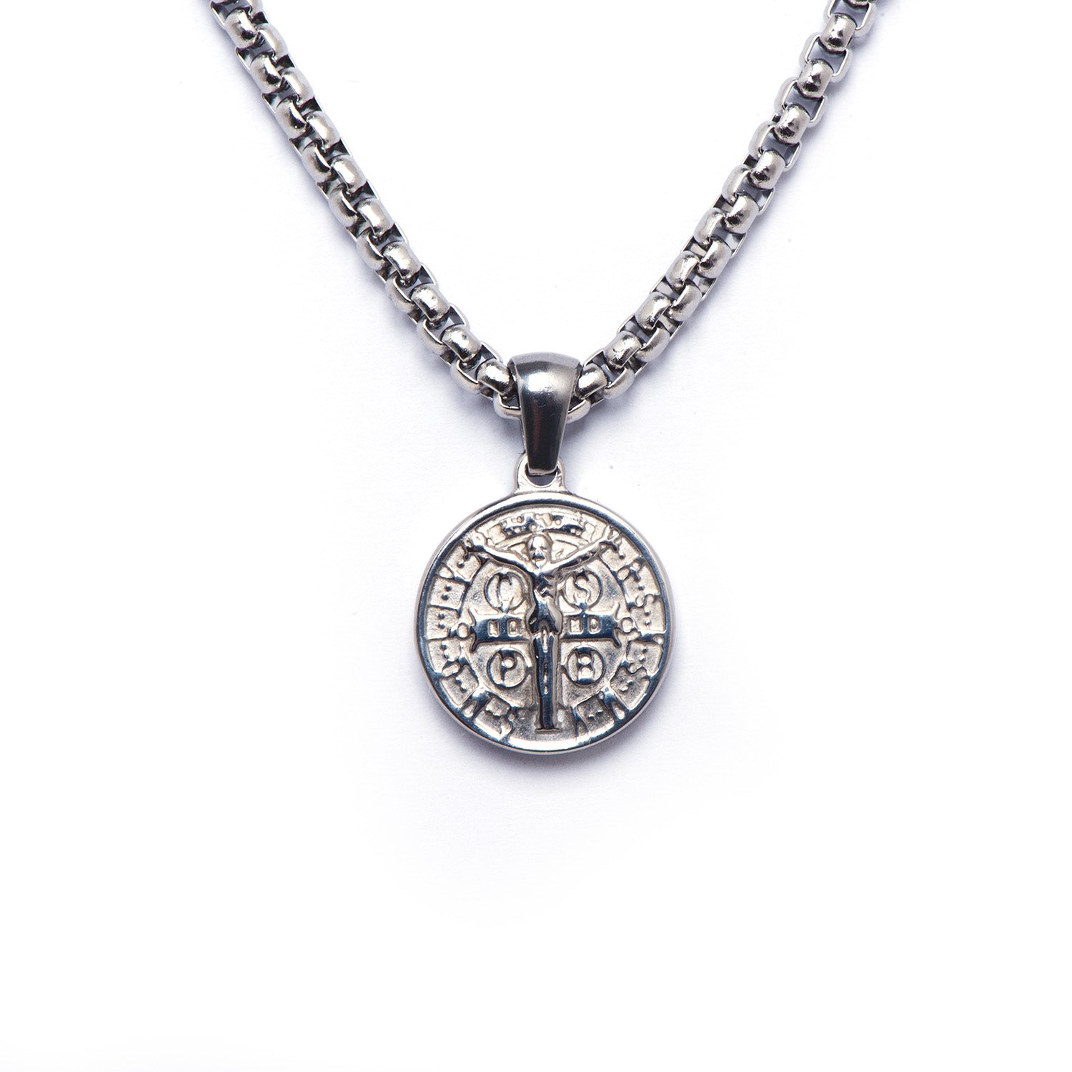 The Venetian chain made of hypoallergenic steel stands out for its elegant and durable design, perfect for those who want a sophisticated yet versatile look. The medal-shaped pendant adds a touch of character, inspired by ancient symbols of strength and protection.