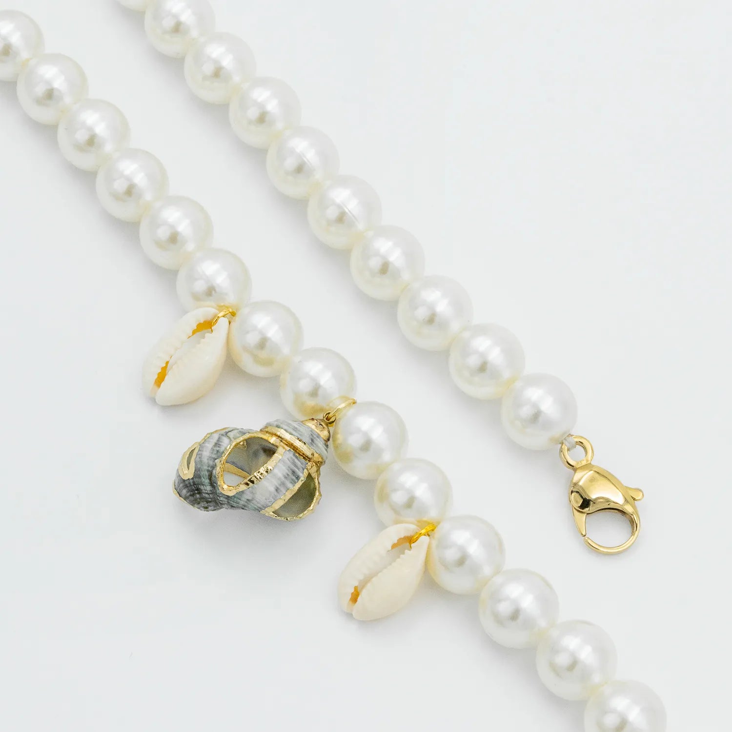 - Materials: The necklace structure is made of water-resistant braided nylon cord; the necklace is crafted with 14mm eco-friendly river pearls and natural shell charms