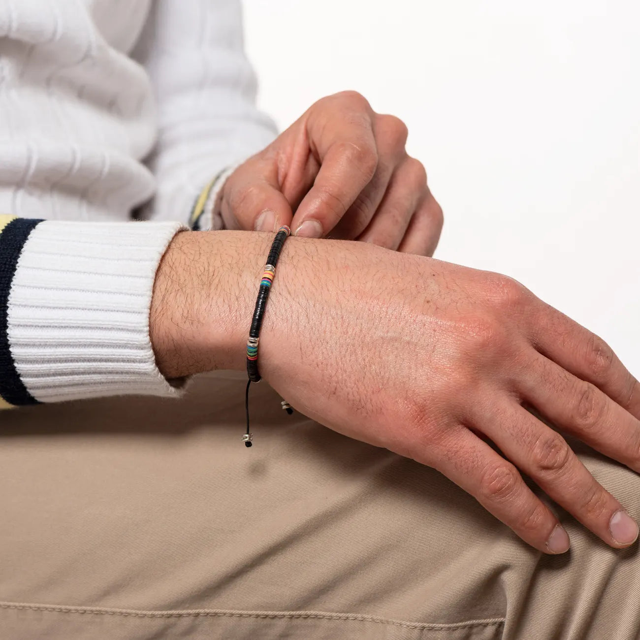Nori is a men's bracelet handmade with African vinyl discs and 5-micron silver-plated findings.
