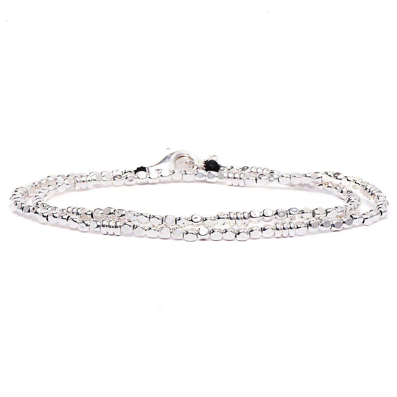 Peter is a men's bracelet featuring a double wrap and handcrafted with elements stamped in 925 Silver. This men's bracelet is made with a braided nylon cord that is water-resistant. It has a lobster clasp closure.