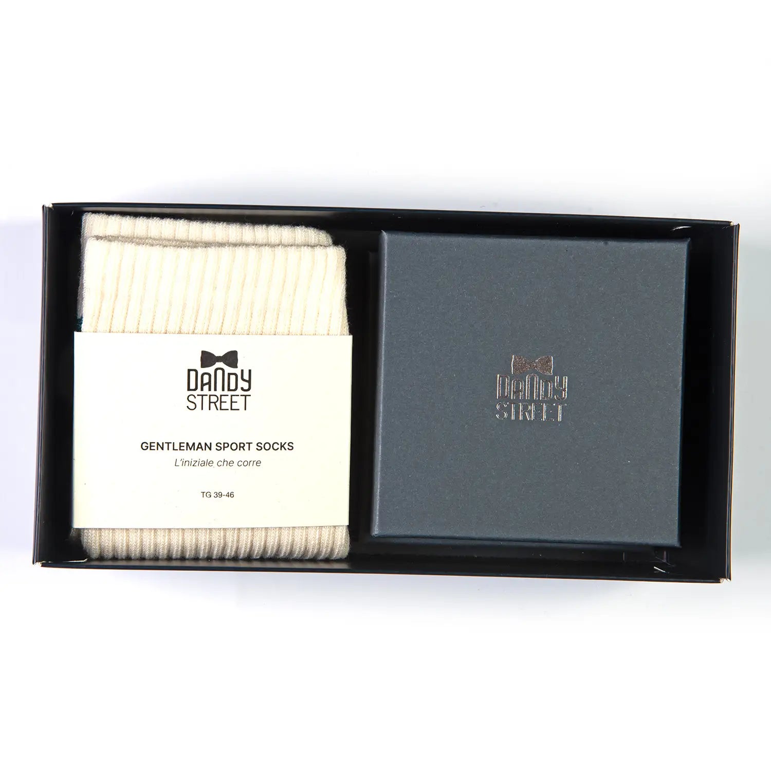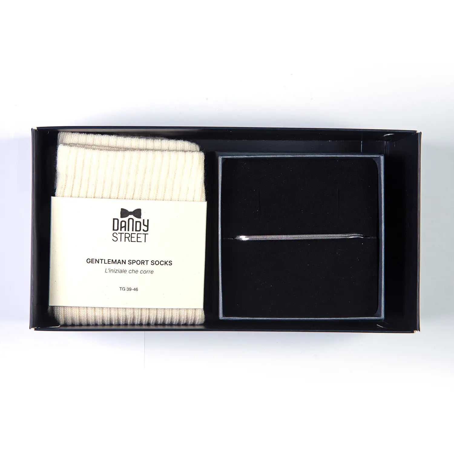Surprise with an exclusive gift that combines style and personality: this refined Gift Set by Dandy Street includes personalized socks and an elegant snake chain bracelet, perfect for a modern and sophisticated man. The socks, made from soft cotton and customizable with initials, offer a blend of comfort and uniqueness, ideal for adding character to any outfit. The bracelet, with its minimalist design and polished steel, is a versatile and timeless accessory suitable for any occasion. Everything is presented in an elegant package, carefully detailed, perfect for special moments.