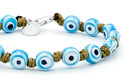 The men's bracelet from the Lucky series is an original and trendy summer accessory, handmade in Italy. The ceramic beads with the hand-painted Greek eye, a symbol of protection and luck, add color and personality to the look. Suitable for casual or elegant outfits, in the city or on vacation, it easily pairs with light or dark garments for a fresh and modern look. Closes with a lobster clasp.
