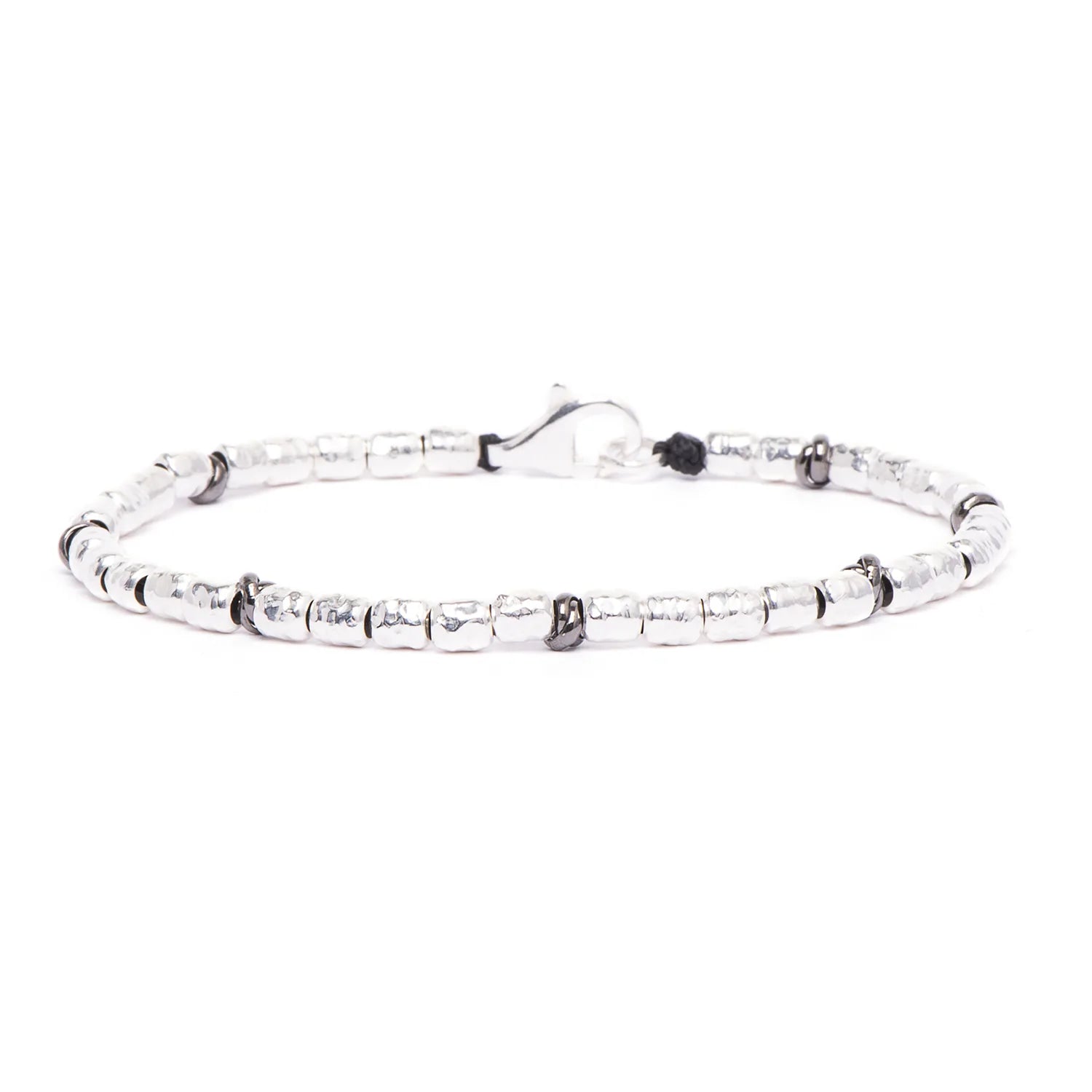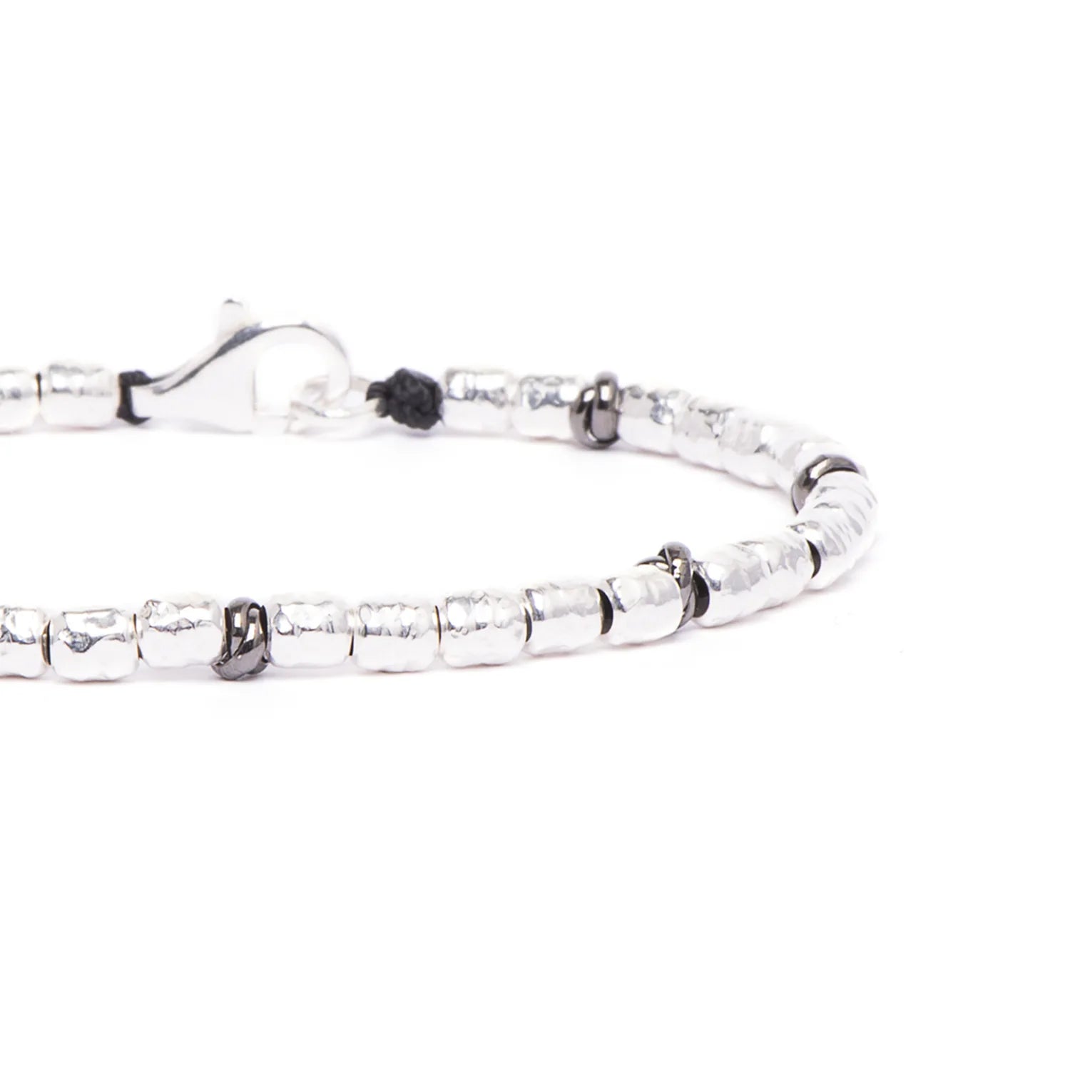 Se cerchi un accessorio da uomo che unisca stile e qualità, Barrie, bracciale realizzato a mano in Italia, è quello che fa per te: è composto da un filo braided di colore nero e da elementi stampati in argento 925 color fumo di Londra. L’argento 925 è un metallo pregiato e resistente, che conferisce al bracciale un tocco di classe e di luce e il colore rutenio dell’argento crea un effetto originale e moderno. Questo bracciale è perfetto per un uso quotidiano, in quanto si adatta a diversi look e outifit, sia sportivi sia eleganti. Indossalo per dare un tocco di personalità al tuo stile.