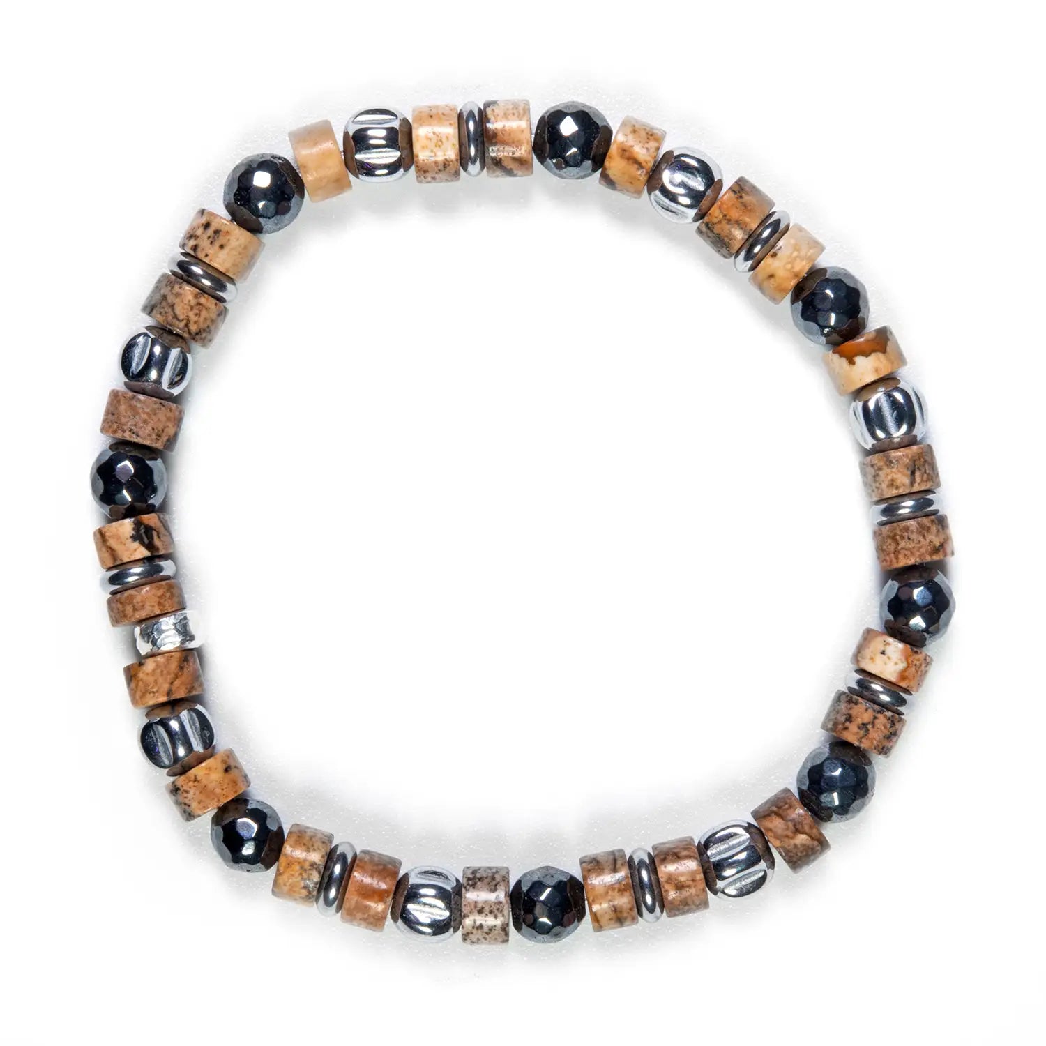 GeoCore è un bracciale da uomo dal design italiano realizzato con pietre naturali, un accessorio autentico e raffinato pensato per chi apprezza uno stile ricercato ma discreto. La combinazione tra la paesina, con le sue venature calde e terrose, ed ematite lucida crea un equilibrio elegante di colori e texture, dando vita a un design dal carattere contemporaneo. Ogni dettaglio è realizzato con cura artigianale Made in Italy, valorizzando materiali selezionati per qualità e resistenza.