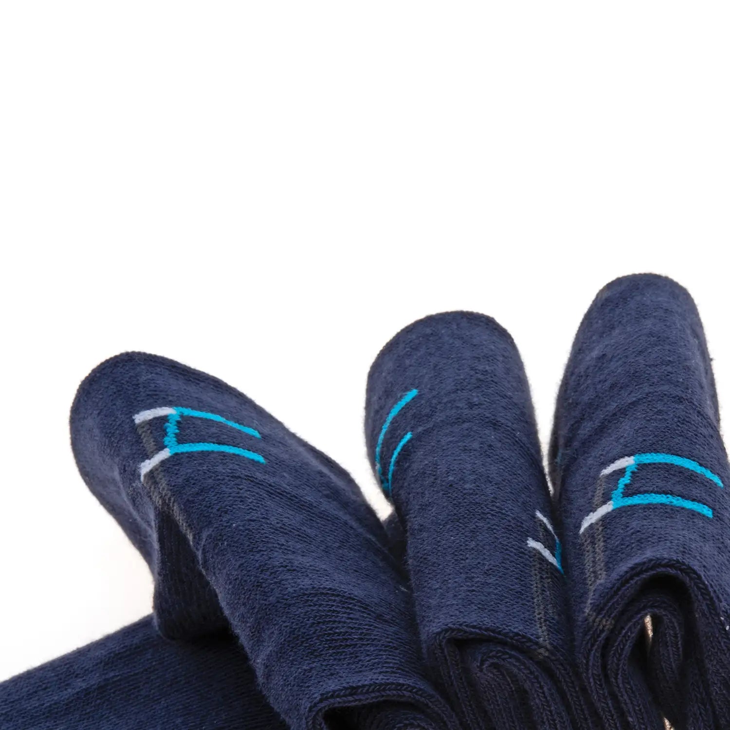 Calze da uomo in caldo cotone con fantasia rugby su fondo blu, per un insieme di colori che aggiungono un contrasto elegante che dona personalità a look quotidiani e serali
